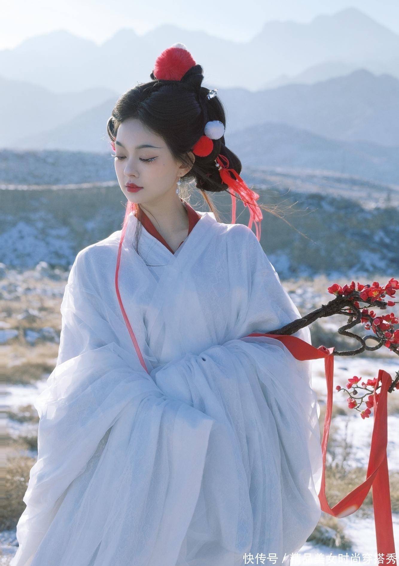 ????️冬日雪域,银装素裹,一位身着纯白汉服的女子宛如仙子降临凡间!她的衣袂随风轻扬,仿佛带着一股不食人间烟火的仙气。红白相间的发饰与飘带,在白雪的映衬下更显艳丽,如同冬日里的一把火,温暖了整个寒冷的季节。